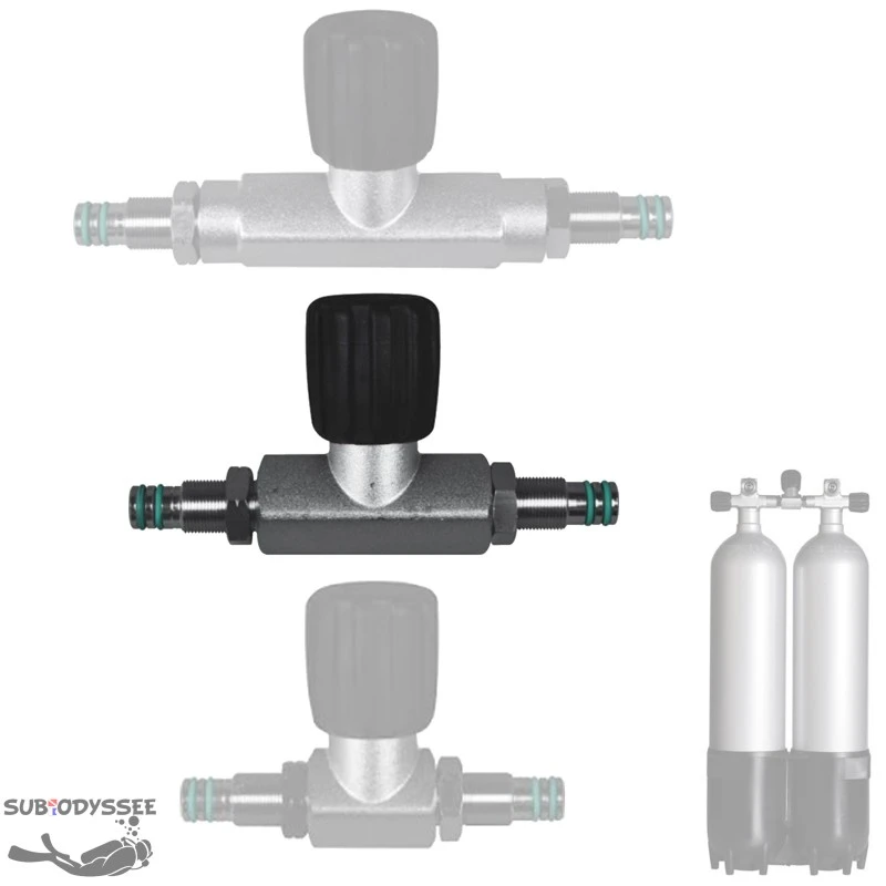 Barre centrale de liaison avec robinet central d’isolation pour bi-bouteilles de plongée Ø 171mm :