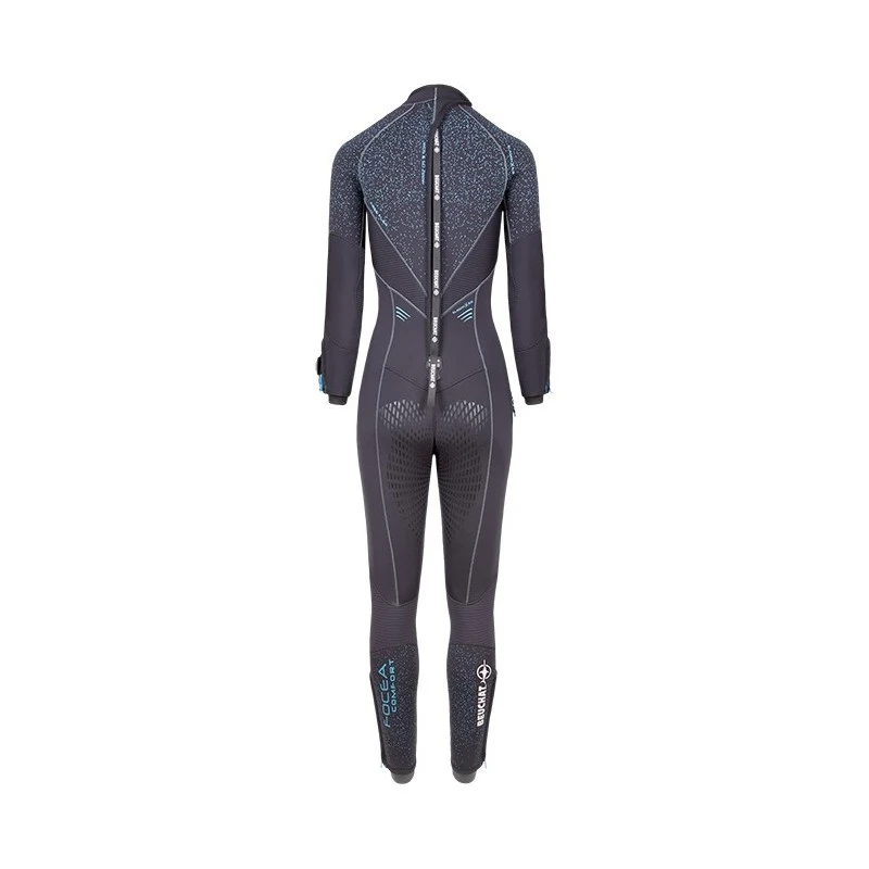 – Grand Zip dorsal « G-Lock plus » avec curseur métal & sous-patte au profil embossé Water Dam System pour une étanchéité accrue (brevet Beuchat) Zip poignet & cheville.