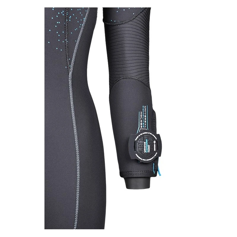 – Manchons : Double manchon poignet & cheville zippé avec manchon intérieur à retourner, en jersey intérieur & néoprène lisse extérieur. L’extrémité de la couture d’assemblage des manchons intérieurs est coupée à 45° pour plus d’élasticité & de solidité lors de l’habillage.