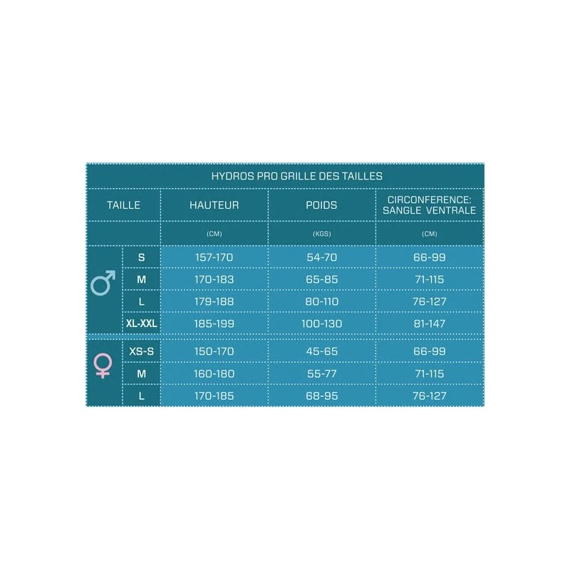 Disponibles en trois tailles pour les femmes (XS/S, M, L), avec une portance de 15,9 kg/35 lb ou 18,1 kg/40 lb (en fonction de la taille choisie).