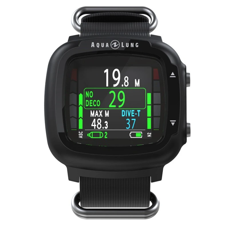 Aujourd’hui, qui mieux d’AQUALUNG avec son département plongée militaire, pouvait sortir un nouvel ordinateur de plongée doté de ce fameux bracelet NATO !