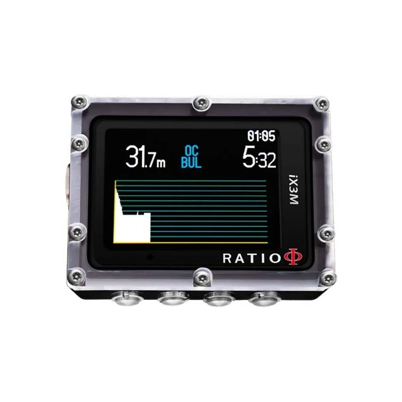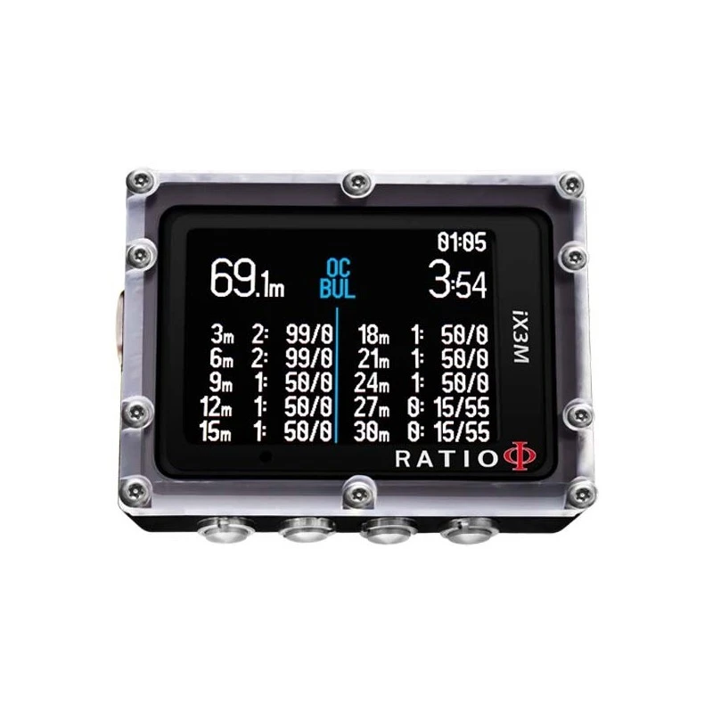– Temps réel : 2 Algorithmes qui permettent un maximum de flexibilité, de fiabilité & de performance. La série iX3M intègre un algorithme complet qui calcule en temps réel votre saturation des tissus en cours de plongée & après la décompression. Ceci permet d’obtenir des profils de décompression précis, fiables & très sûrs.