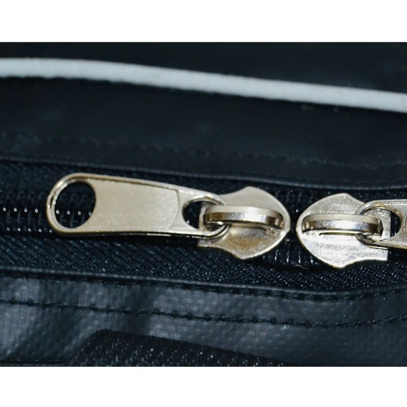 Fermeture: Large glissière en U en plastique pour faciliter l’ouverture
