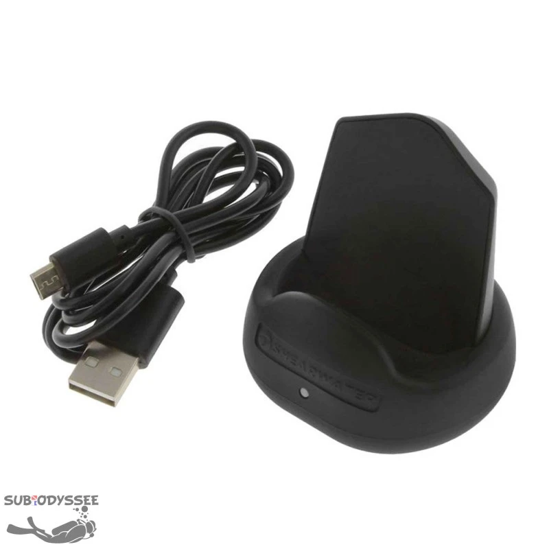 L’ordinateur Shearwater TERIC utilise une batterie rechargeable sans fil. Il est livré avec un chargeur à induction sans fil.